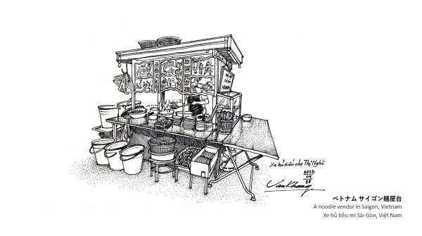 これらの絵は、私のスケッチブックから選んだもので、ベトナムでの日常生活と、特に日本での留学と仕事の10年間の記憶と感情をとらえています。日本滞在中は、さまざまな場所に住み、多くの先生方、友人にお世話になりました。時がたつにつれ、日本を第2の故郷と考えるようになり、私の中には、ベトナムと日本の文化が調和して融合しているように思えます。